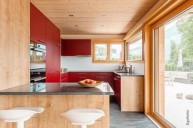 Questa casa monofamiliare, costruita dalla nostra azienda specializzata partner Wyler Holzbau AG, si trova a Brienz, nell'affascinante quartiere di Steinmätteli, una zona ideale per famiglie, a due passi dalla natura e dal centro della città. Dopo otto mesi di lavori, la famiglia Balmer si è trasferita a marzo 2016 nella sua nuova casa di Brienz. Questa casa monofamiliare con appartamento annesso offre atmosfera, viste spettacolari sul lago di Brienz e un'esperienza di vita dal carattere moderno. I diversi spazi verdi e l'interessante architettura Rdonano all'immobile una giocosa leggerezza. In questa casa monofamiliare sono stati utilizzati diversi prodotti EgoKiefer, principalmente le finestre e le porte-finestre scorrevoli alzanti in legno/alluminio.